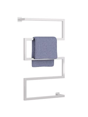 Towel racks in geometric shape and form are chosen more and more often when decorating bathrooms, both at home and in hotels. They will ideally complement interiors where marble or wood materials are used and will be ideal decoration in homes in the style of a modern barn. Such a towel rack becomes a decorative and eye-catching element of an interior design apart from its utility function. What’s more, metal bathroom accessories are moisture resistant so the one you choose will certainly last for ages.